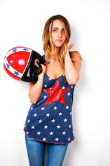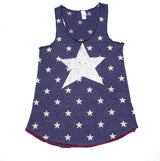 Show off your love for the USA with our adorable sequin star design in your choice of color on a racerback star tank top. Perfect for 4th of July or whenever you're feeling patriotic!