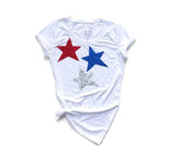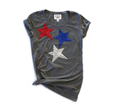 Show off your love for the USA with our adorable red silver and blue sequin star design on a unisex crew neck tee shirt. Perfect for 4th of July or whenever you're feeling patriotic!
