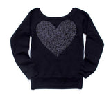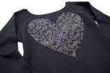 Show your edgy side with this handmade sequin heart sweatshirt. The Black Heart Sweatshirt is an extra-soft, ultra-comfy sweatshirt that feels like you’ve owned it for years the moment you put it on, and for years to come. The hand sewn sequin heart is placed with care to create a one of a kind sweatshirt that is sure to get compliments!