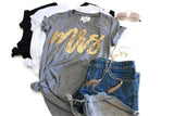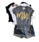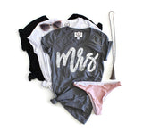 Show off your love for your hubby with our adorable sequin 'Mrs' tee shirt.