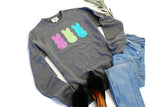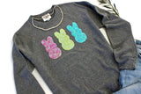 Get sparkly this Easter with our adorable pastel sequin Peeps Sweatshirt in grey.