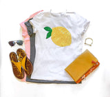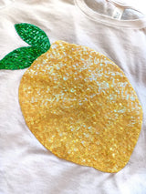 Pucker up and fall in love with our adorable handmade sequin lemon tee shirt.