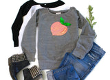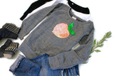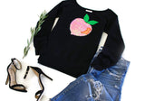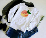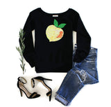 Women's wide neck and a unisex sweatshirt to lighten your day with a yummy flip sequin peach patch on the sweatshirt front.