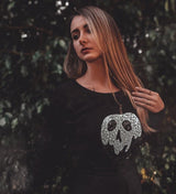 Women's wide neck and unisex, sequin sweatshirt with sequin patch- perfect for Halloween.