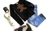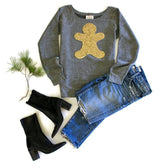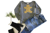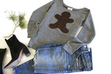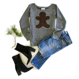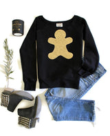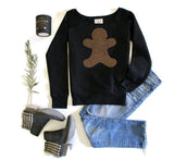 Women's wide neck and a unisex style with a full size Gingerbread Person patch on the sweatshirt front.