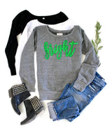 Women's wide neck and a unisex sweatshirt to celebrate in style with a sequined Bright patch on the sweatshirt front.