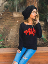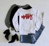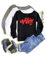 Women's wide neck and a unisex sweatshirt to celebrate in style with a sequined Merry patch on the sweatshirt front.