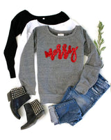 So soft pullover sweatshirt featuring a plush interior for luxurious warmth and 100% handmade sequin patch. Available is a women’s wide neck style or a unisex crew neck. Please refer to the Size Guides below prior to ordering.