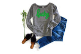 Get sparkly this St Patricks Day with our adorable sequin patch 'lucky' sweatshirt in a variety of colors.