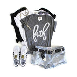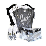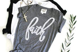 Show off your faith with our adorable handmade sequin faith design. Available on a unisex tee shirt in your choice of color.