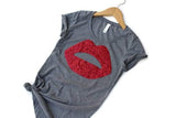 Customizable sequin lip tee shirt - perfect for Valentine's Day or any Day. Available in tee shirt in your choice of colors.