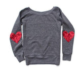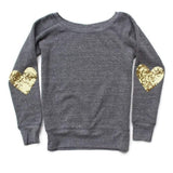 Women's wide neck and unisex, sequined sweatshirt with heart-shaped patches on the elbows - perfect for any day, especially Valentine's Day. Fully customizable design, chose your sequin color and sweatshirt color for a truly one of a kind piece!