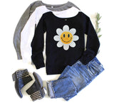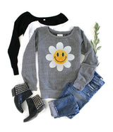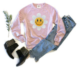 Our cute, handmade smiley daisy patch is perfect for brightening your day. This cozy sweatshirt is designed to fit comfortably in two styles. The cozy long sleeve design offers superior warmth and softness from the plush fleece interior. Comes in your choice of color!
